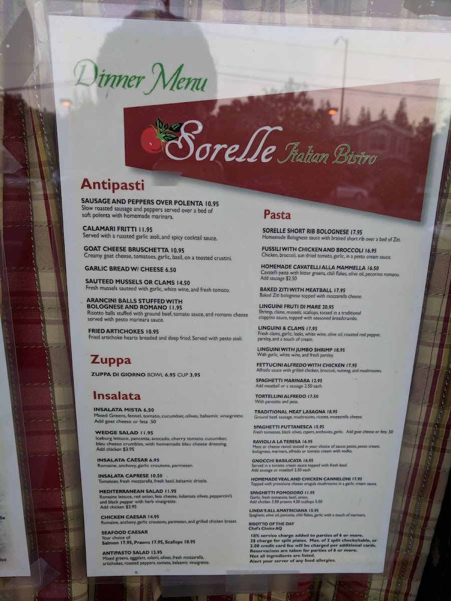 Welcome to Sorelle Italian Bistro, a beloved gem nestled in Campbell, CA, where authentic Italian cuisine takes center stage. Located at 915 S San Tomas Aquino Rd, this charming bistro has earned a reputation for warmth and hospitality, making it the ideal spot for both casual family dinners and special celebrations.
